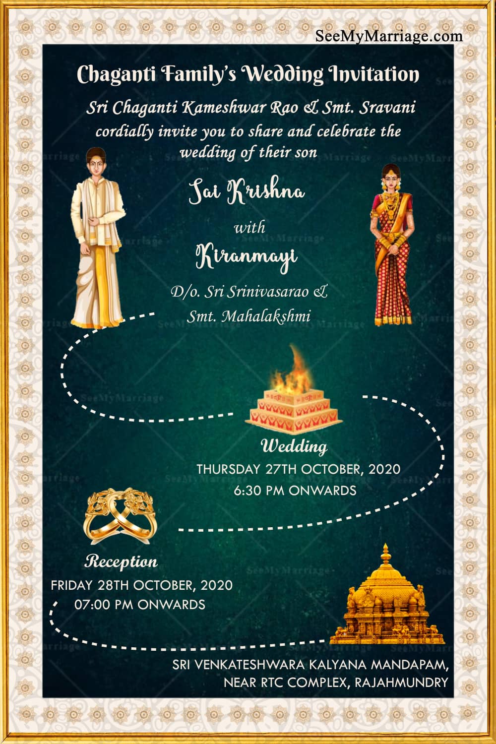 Gold And Green Telugu Traditional Wedding Invitation Video Id 11801 Seemymarriage